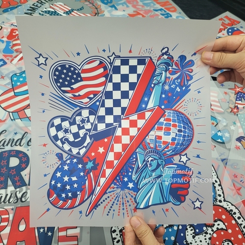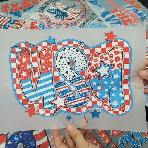 Happy July 4 ° modello di stampa a trasferimento termico adesivo Hot Fix Applique Applique per t-shirt Hoodie bag cuscini ombrello