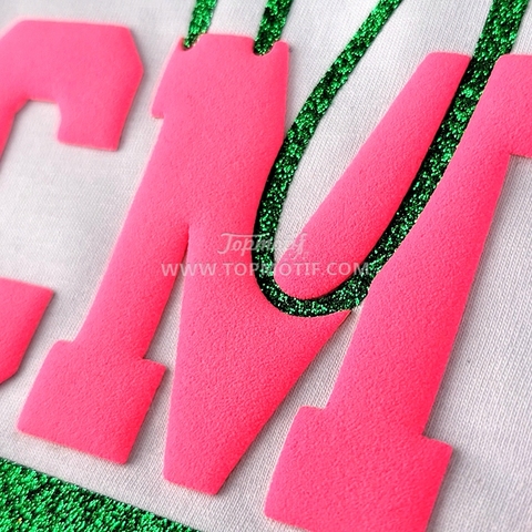 Personalizzato 3D sbuffo trasferimenti di calore Glitter HTV diversi argomenti disegni con Multi materiale per la decorazione di cuscini indumento