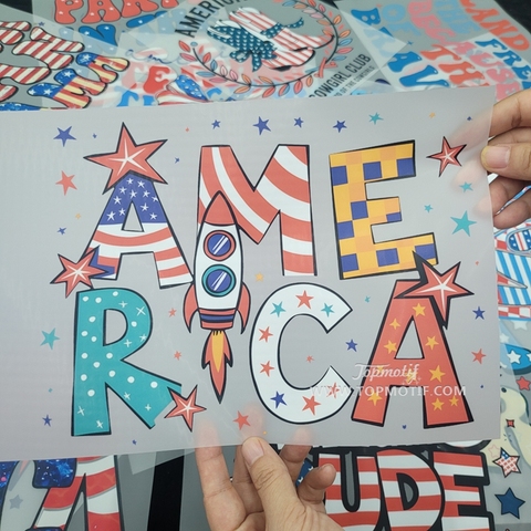 Benutzer definierte Party in den USA Happy America 4. Juli DTF Wärme übertragung für T-Shirts