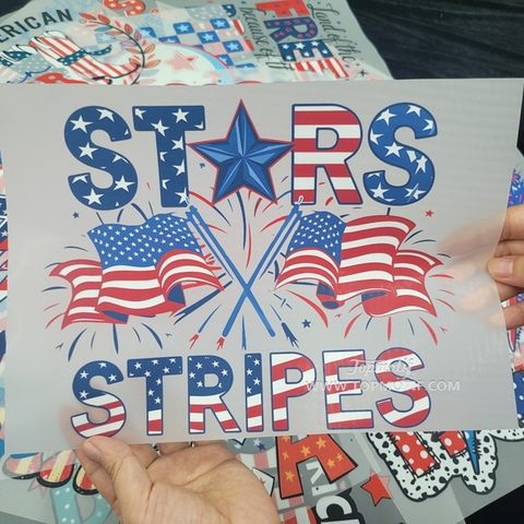 Benutzer definierte Sterne Streifen Happy America 4. Juli DTF Wärme übertragung für T-Shirts