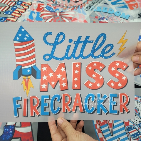 Benutzer definierte Little Miss Fire cracker Happy America 4. Juli DTF Wärme übertragung für T-Shirts