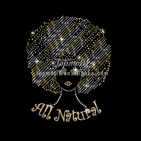 Phụ Nữ Da Đen Afro Cô Gái Rhinestone Sắt Trên Chuyển Tất Cả Tự Nhiên Cho Quần Áo