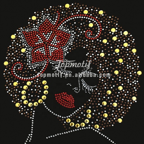 Tùy Chỉnh Sexy Afro Cô Gái Naiilhead Rhinestone Chuyển Cho T-Shirts Cao Cấp Thạch Cho Quần Áo Trang Trí Nội Thất