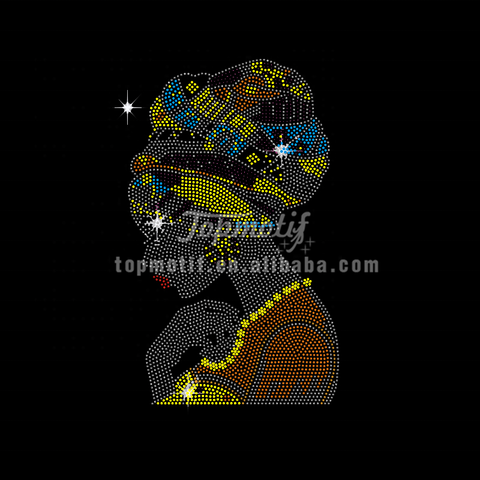 Phổ Biến Nhà Máy Bán 3D Afro Đen Lady Sắt Trên Thiết Kế Đầy Màu Sắc Rhinestone Chuyển Cho Quần Áo