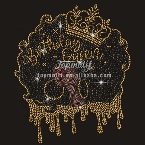 Thời Trang Hàng Đầu Lấp Lánh Sắt Trên Đen Nữ Hoàng Afro Cô Gái Sửa Chữa Nóng Rhinestone Chuyển Thiết Kế Cho Tees